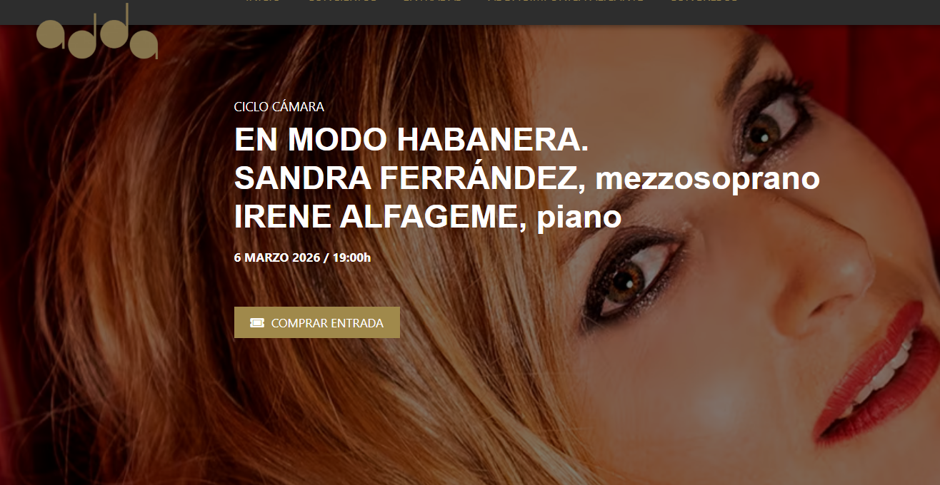 CICLO CÁMARA. EN MODO HABANERA. SANDRA FERRÁNDEZ, mezzosoprano IRENE ALFAGEME, piano març 6 CICLO CÁMARA. EN MODO HABANERA. SANDRA FERRÁNDEZ, mezzosoprano IRENE ALFAGEME, piano 7:00 PM - 8:30 PM